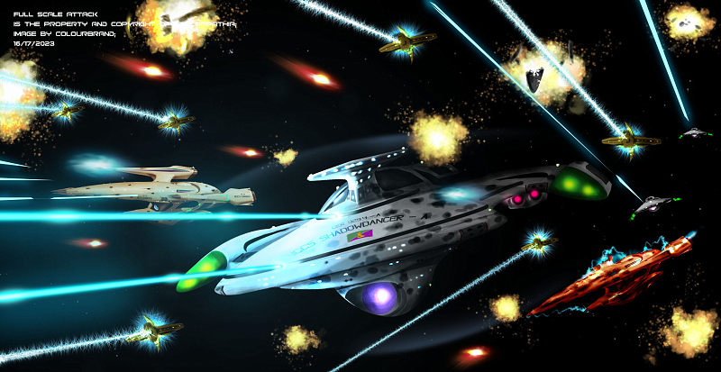 Shadowdancer blasted through the battlefield, ducking and weaving past confused vashta ships.After taking position in front of the Falchion, Teek engaged in disregarding all his training and steered into every shot he could manage. The other Carpathian ships around them did the same.