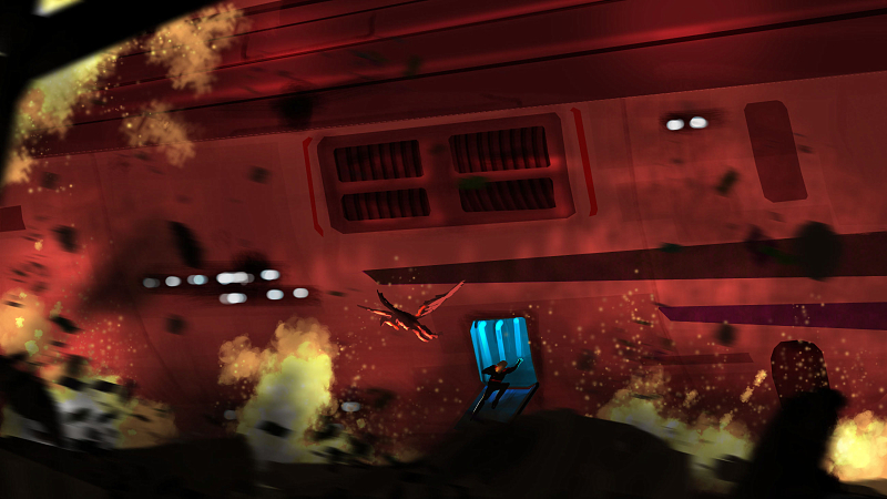 Teek aimed the ship for the life signs, as much as he could, as he continued dodging falling rocks, white-knuckled on the yoke and intense concentration on his face. Finally, the platform came into view and Teek slammed the engines into reverse and pulled the yoke hard over, sending the rest of the bridge crew flopping around in their seats like dolls.